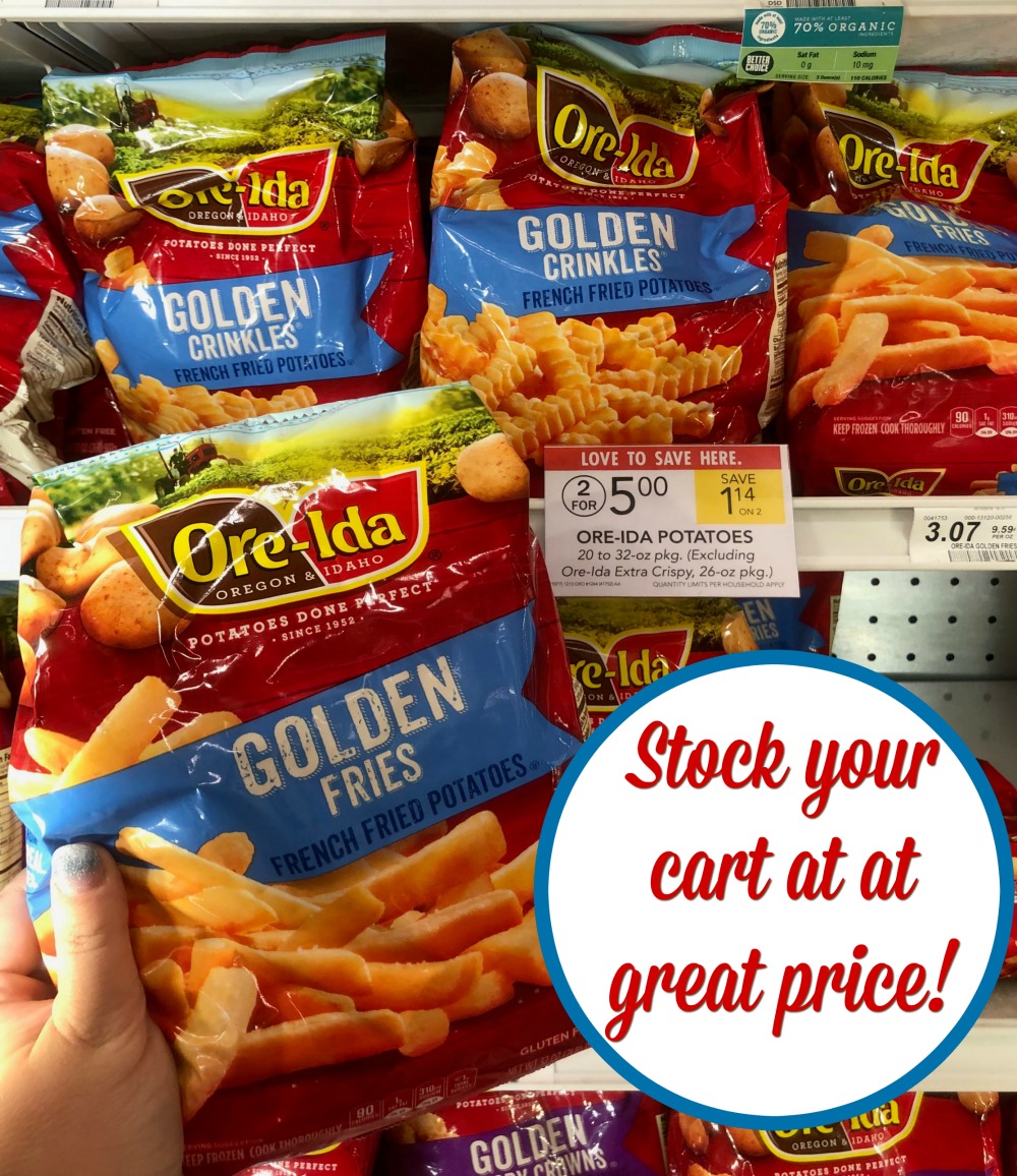 New Ore-Ida Coupon - Get Fries for Just $1.74 at Safeway (Save 50%) Fries are the perfect pairing for a burger or hot dog, as a base for cheesy fries, or as a side to meatloaf! The options are endles. Ore-Ida Fries Coupon . Ore Ida Potatoes 26-32 oz. on sale for $2.49 when you buy 5, mix and match through August 11th. Submit ibotta cash back offer for $.75 back on Ore-Ida Frozen Potatoes, limit 5